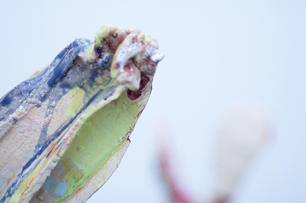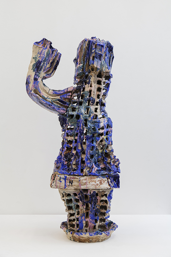 Succulents. These recent sculptures by Clémence van Lunen are created with industrially fabricated hollow bricks. The still humid bricks are cut, twisted, stuck together, fired, enameled, re-fired and assembled. Finally, the assembled pieces take on forms resembling plants with fleshy parts: succulents.