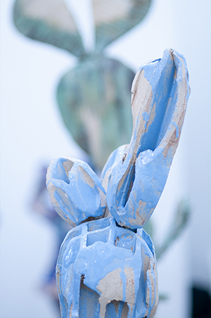 Contrary to Wicked Flowers, sculpted from unformed stoneware clay and roughly worked into shape in a powerful hand-to-hand process, the Succulents have their own inner architecture which the artist explores and boldly manipulates: « It is important for me to always seek new formal languages. »